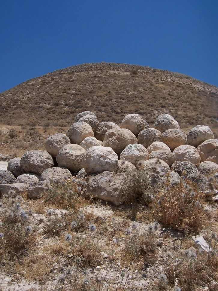 1) круглые камни, которые скатывались защитниками со стен на головы атакующих римлян, и эти же камни - внутри крепости; современный израильский танк охраняет подход к древнему Иродиону: